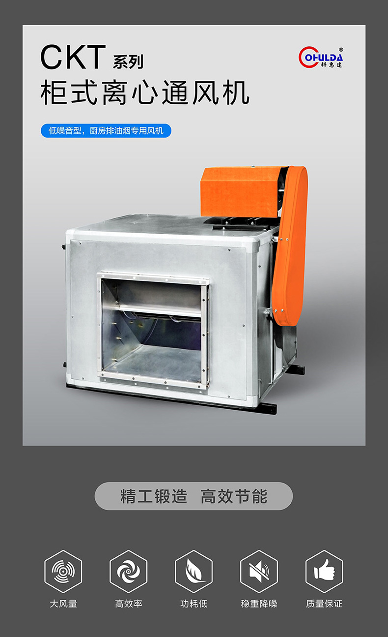 CKT系列低噪声柜式离心风机是经精心研制与改良,性能与结构优化设计,通过空调通风系统的工程应用验证,风柜具有体积小,重量轻,效率高和便于安装维护等特点。
